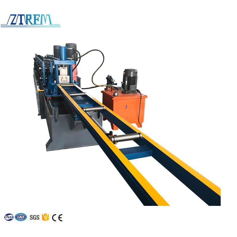 在生產過程中,對孔和槽進行沖壓,以便將負載梁安裝到立式機架中。該套貨架立柱系統設備包含整套立柱生產線,包括開卷機、液壓沖孔機、貨架立柱成型機、收料臺等部分,可以通過參數設置,生產不同尺寸的貨架立柱。